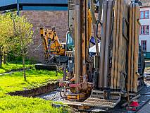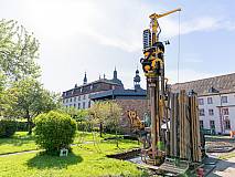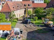 Bereits im April 2024 wurden hierzu Probebohrungen durchgeführt, die erste vielversprechende Ergebnisse lieferten. Erdwärme als erneuerbare Energiequelle wird in Zukunft voraussichtlich einen wesentlichen Beitrag zur Wärmeversorgung des Gebäudeensembles leisten. Sollte sich der positive Trend der Bohrungen bestätigen, könnten sogar bis zu 90 Prozent der benötigten Energie durch regenerative Quellen gedeckt werden. Konventionelle Gasbrennwertthermen kämen dann nur noch zur Deckung von Lastspitzen zum Einsatz.